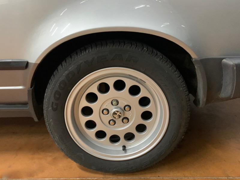L’auto est présentée dans sa couleur d’origine gris métal et la carrosserie est en très bel état de présentation.Les pares-chocs avant-arrière et les bas de caisse sont d’origine et en très bon état.Les panneaux sont parfaitement alignés.Les pneus en bons états sont montés sur les jantes RONAL 15 pouces + 4 jantes origines avec la voiture.