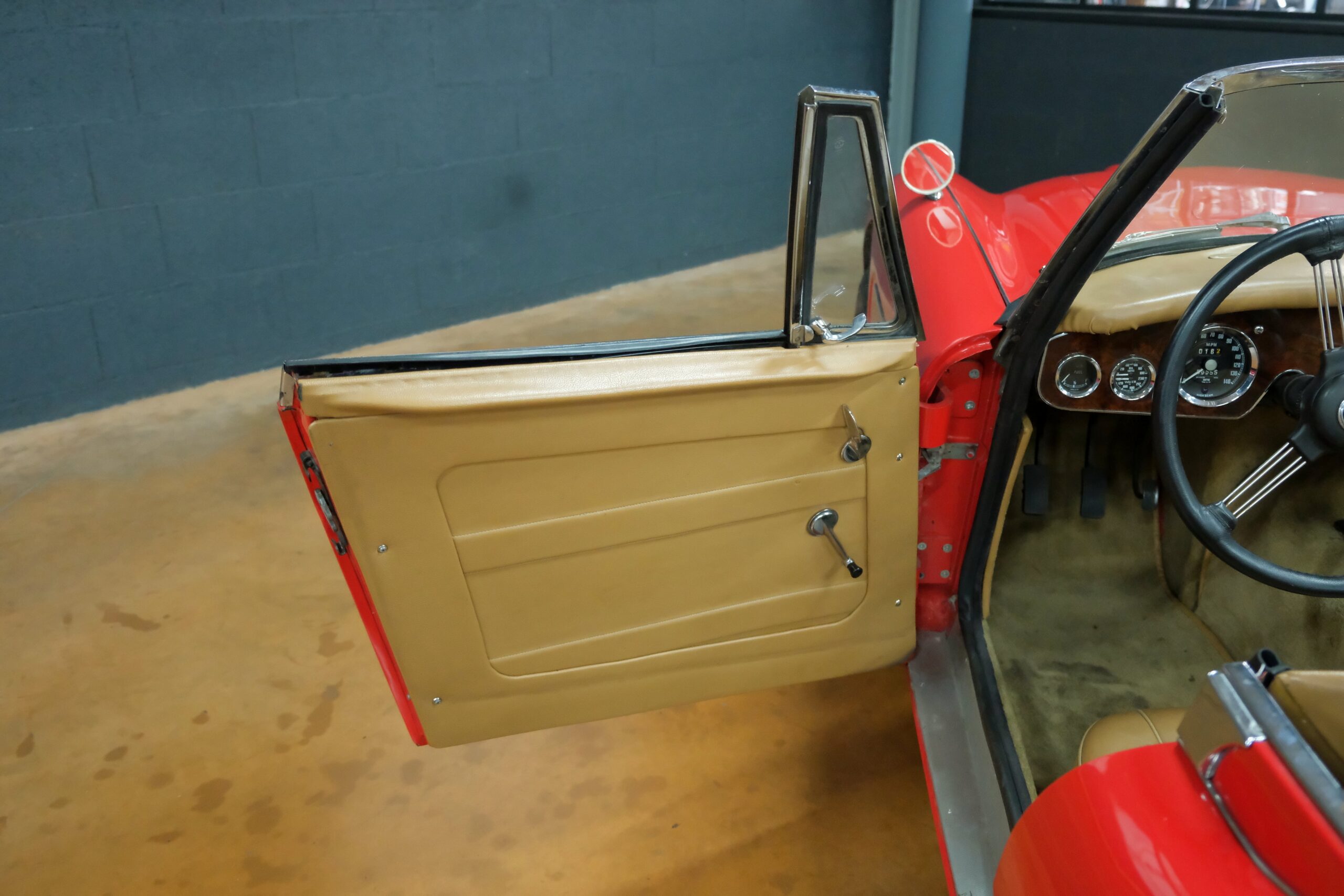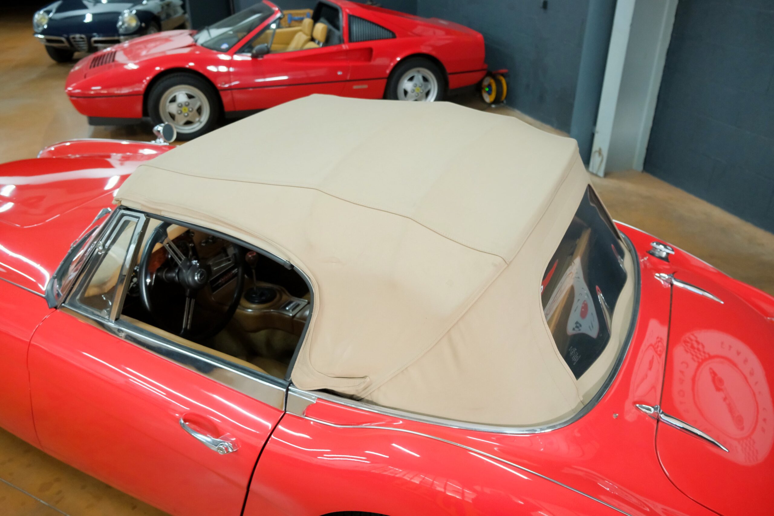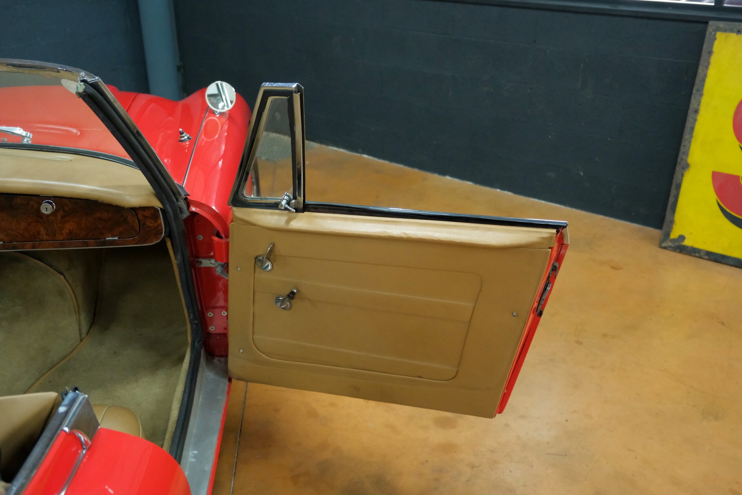 Présentée dans sa très belle combinaison rouge avec sellerie beige et tableau de bord en ronce de noyer vernis, notre auto a bénéficié d’une importante révision au sein de notre atelier.