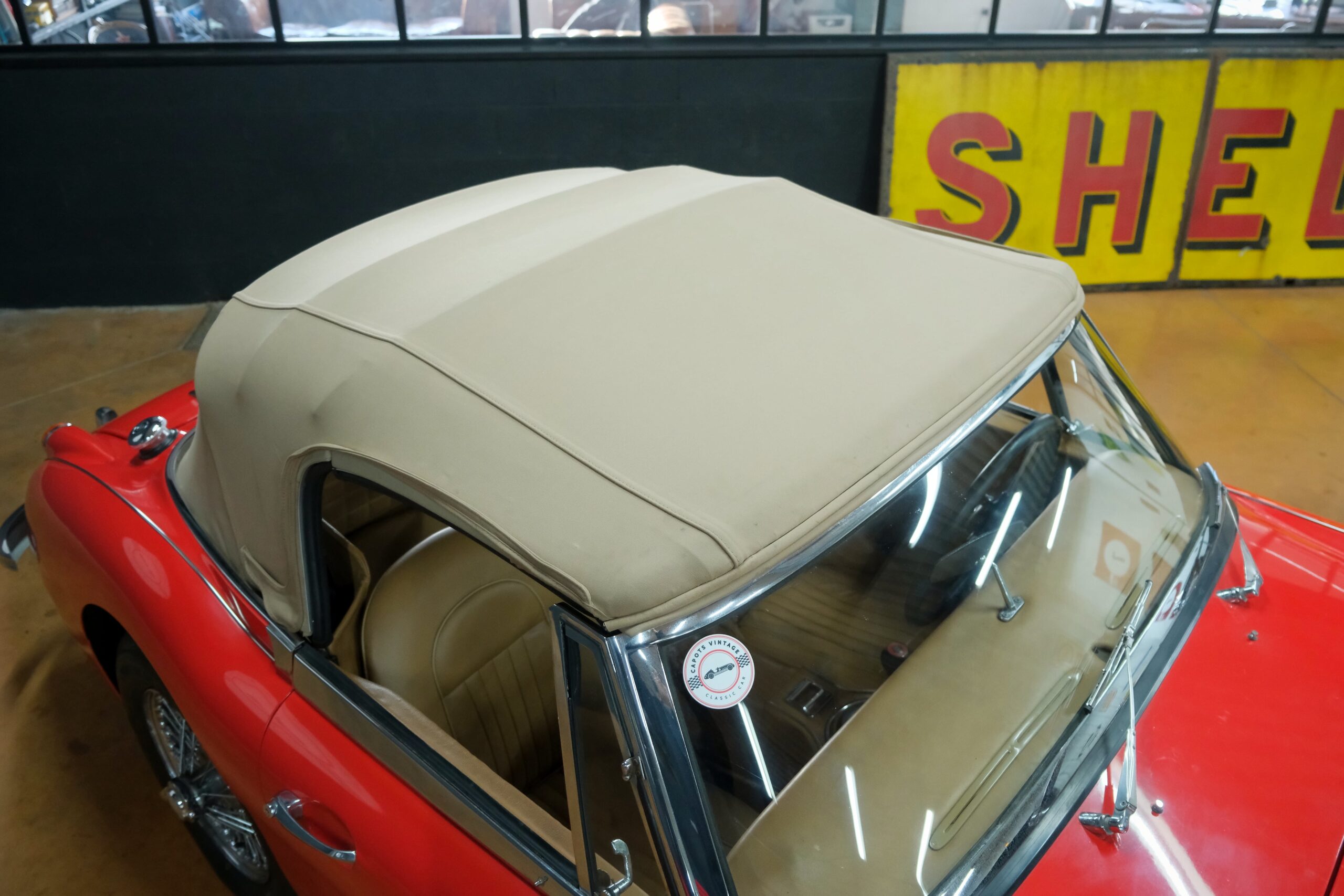 Elle est livrée avec l’ensemble de ses éléments capote et cover-tonneau en alpaga beige.