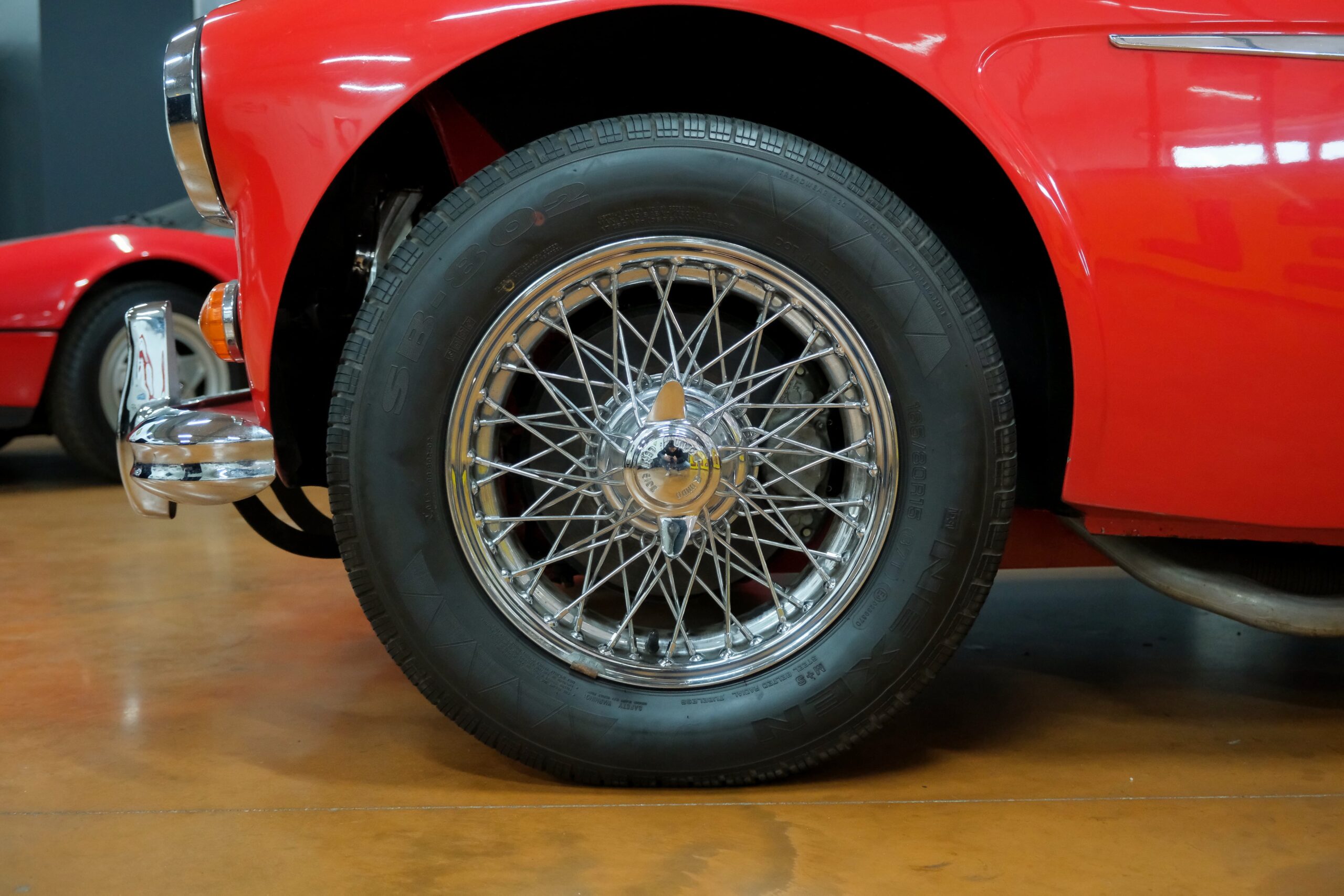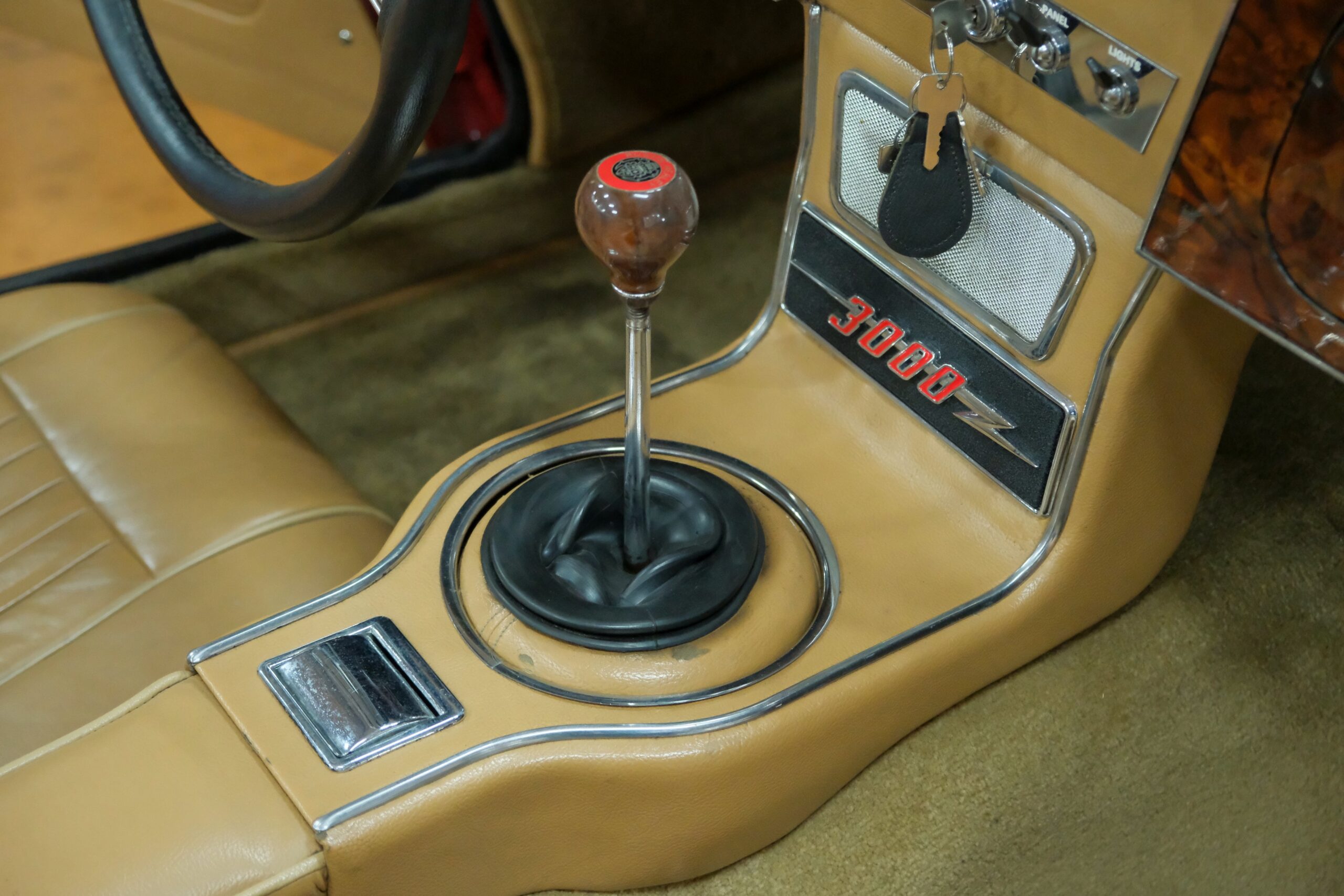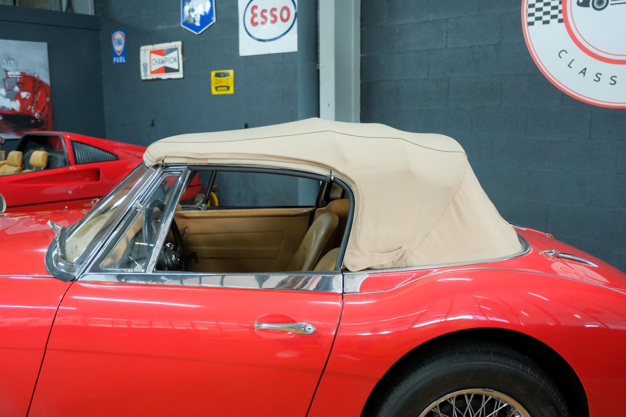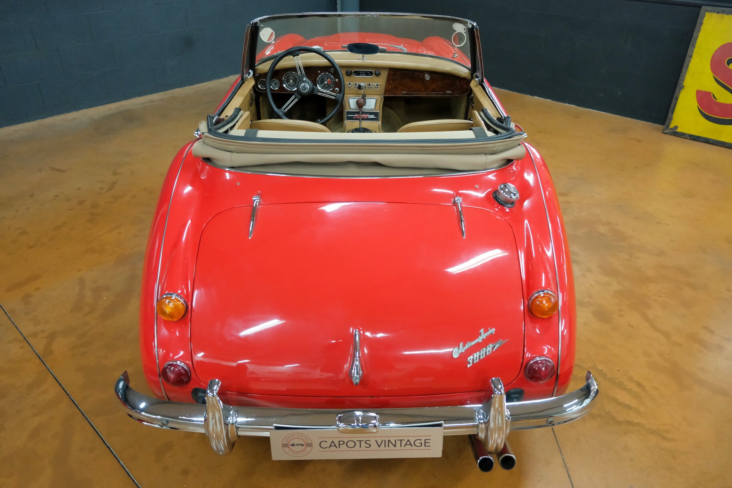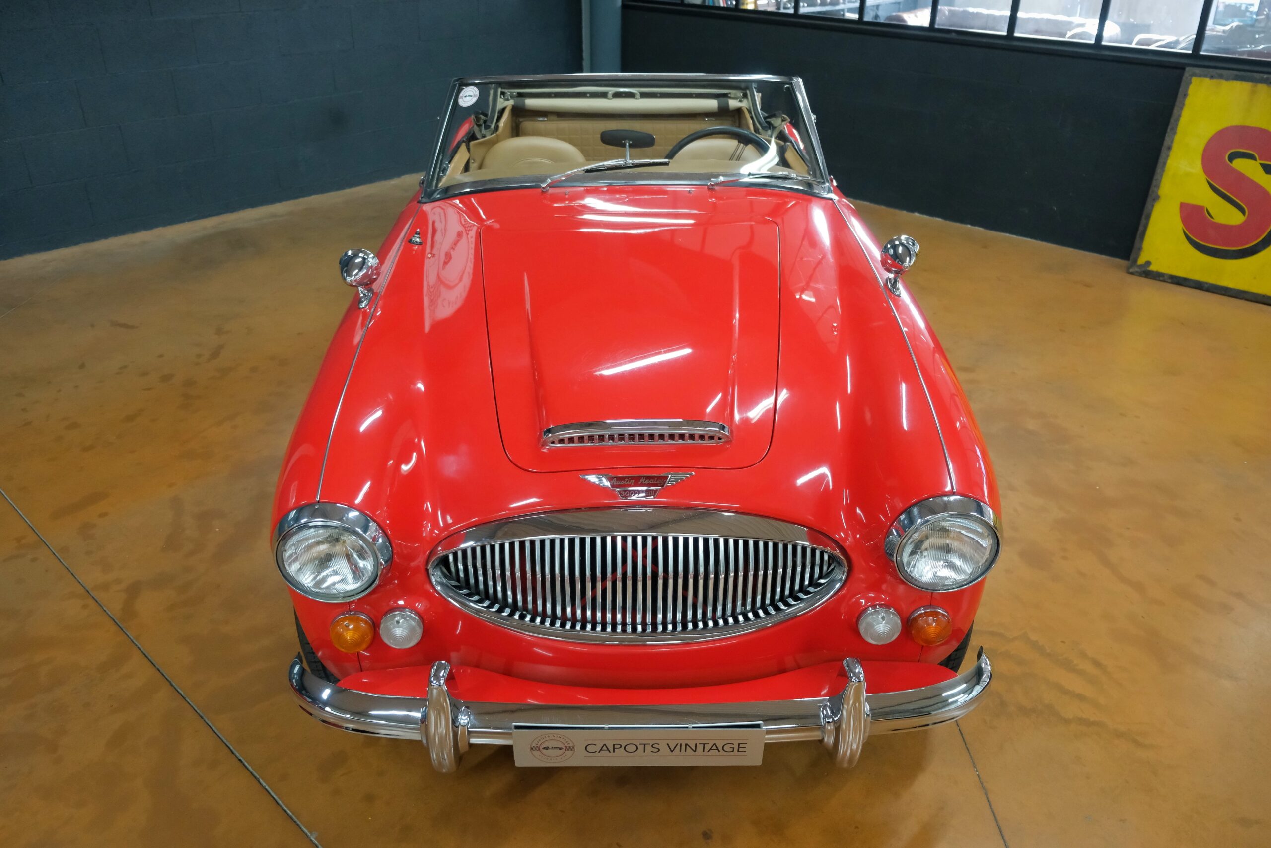 Considérée comme la plus confortable et la plus luxueuse des Austin Healey, c’est une toute dernière version des modèles 3000 que nous vous présentons : une 3000 MK3 BJ8 de deuxième phase. Version BJ8, c’est ainsi une 4 places et est équipée du moteur 6 cylindres en ligne de 148 chevaux. La phase 2 présente certaines différences esthétiques de la phase 1 : les indicateurs de direction sont séparés des feux de position et les disques de frein ont un diamètre plus grand.
