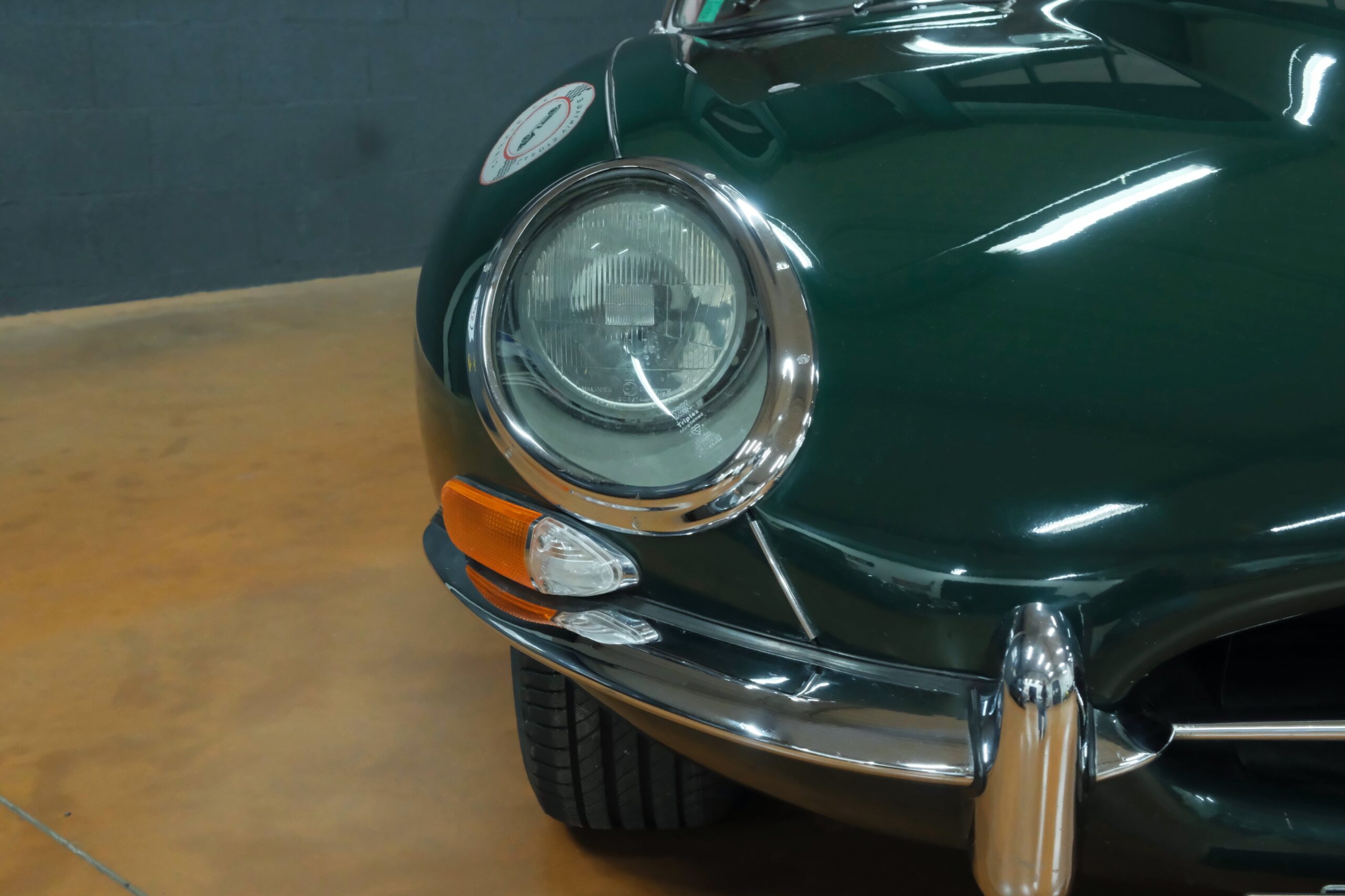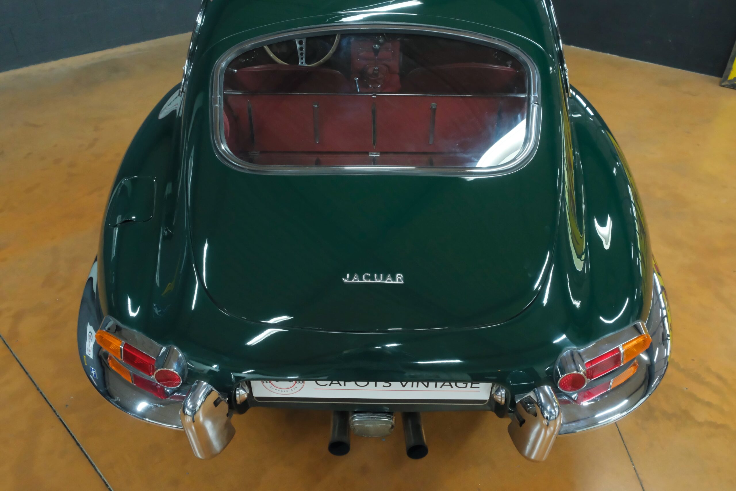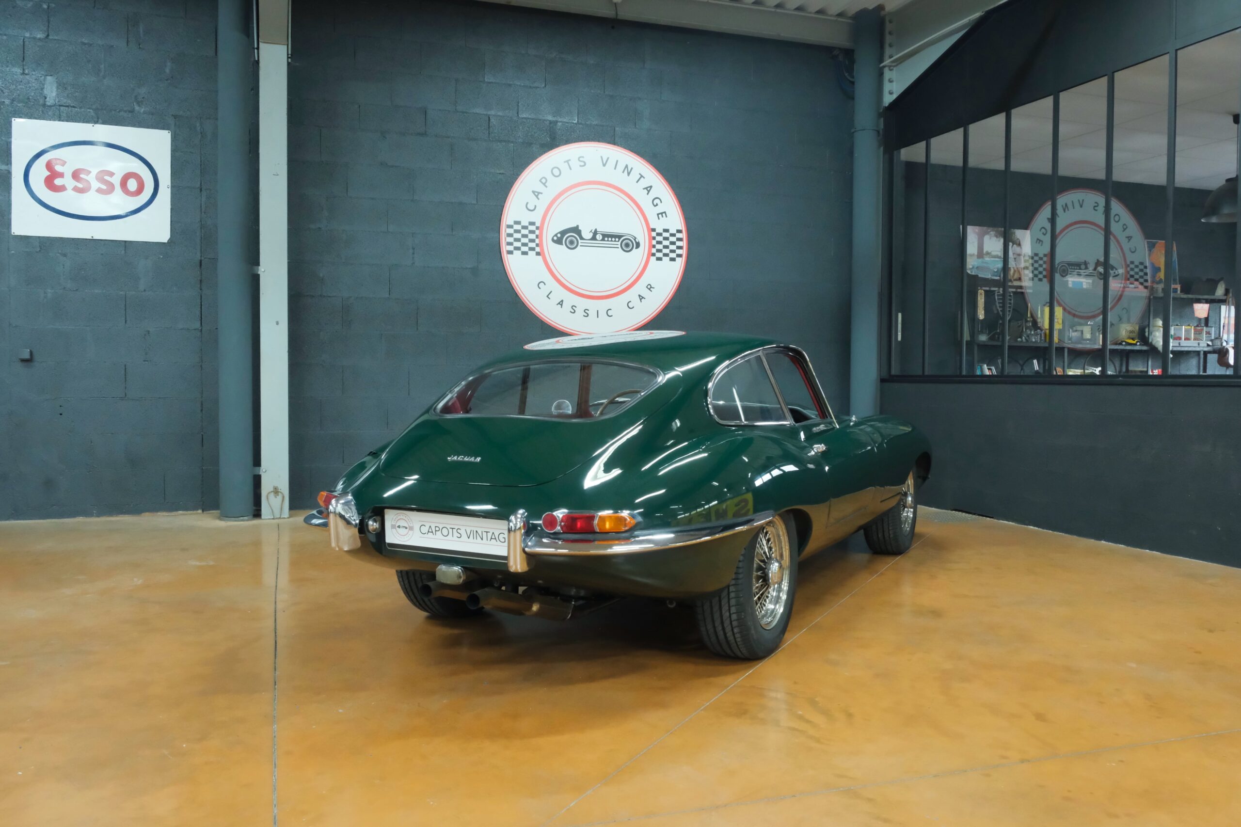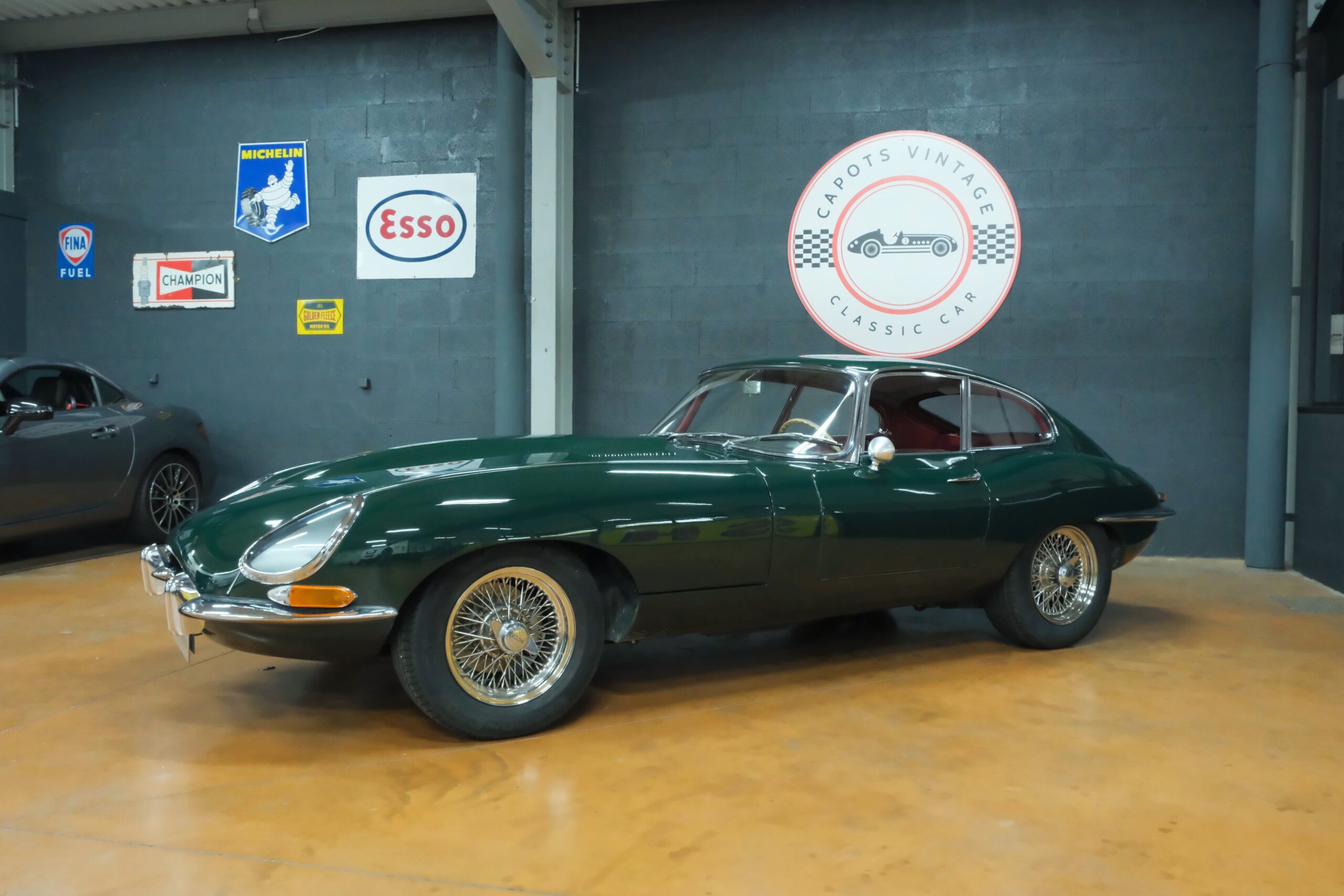 Cet exemplaire se présente aujourd’hui dans une teinte British Racing Green associée à un intérieur en cuir Bordeaux, un mariage sobre et harmonieux qui souligne la finesse du dessin de Malcolm Sayer. Le moteur, matching numbers (bloc et culasse) alimenté par trois carburateurs SU horizontaux, développe 265 ch et offre des performances encore impressionnantes, avec une sonorité typique du six-cylindres Jaguar accentué par l’échappement « inox Big-Bore ». L’auto a appartenu au même propriétaire pendant plus de cinquante ans, preuve d’un entretien rigoureux et d’un soin attentif. Elle a fait l’objet d’une restauration complète par un spécialiste parisien il y a douze ans, incluant la carrosserie, la sellerie et la mécanique.