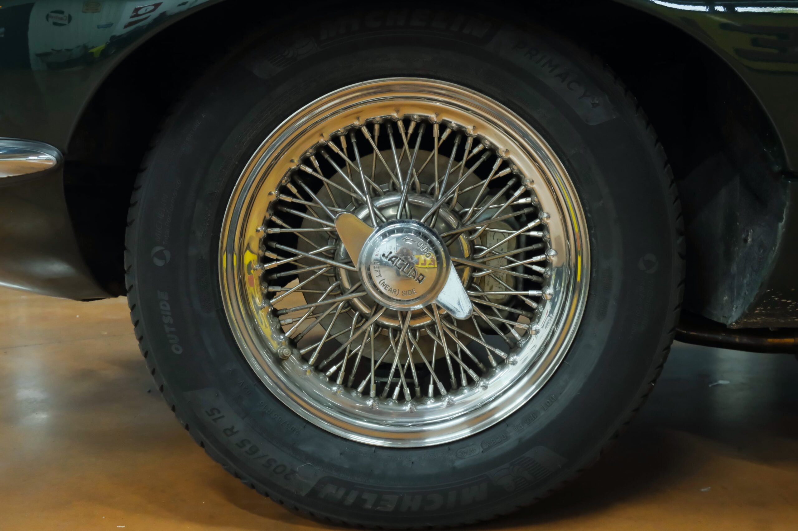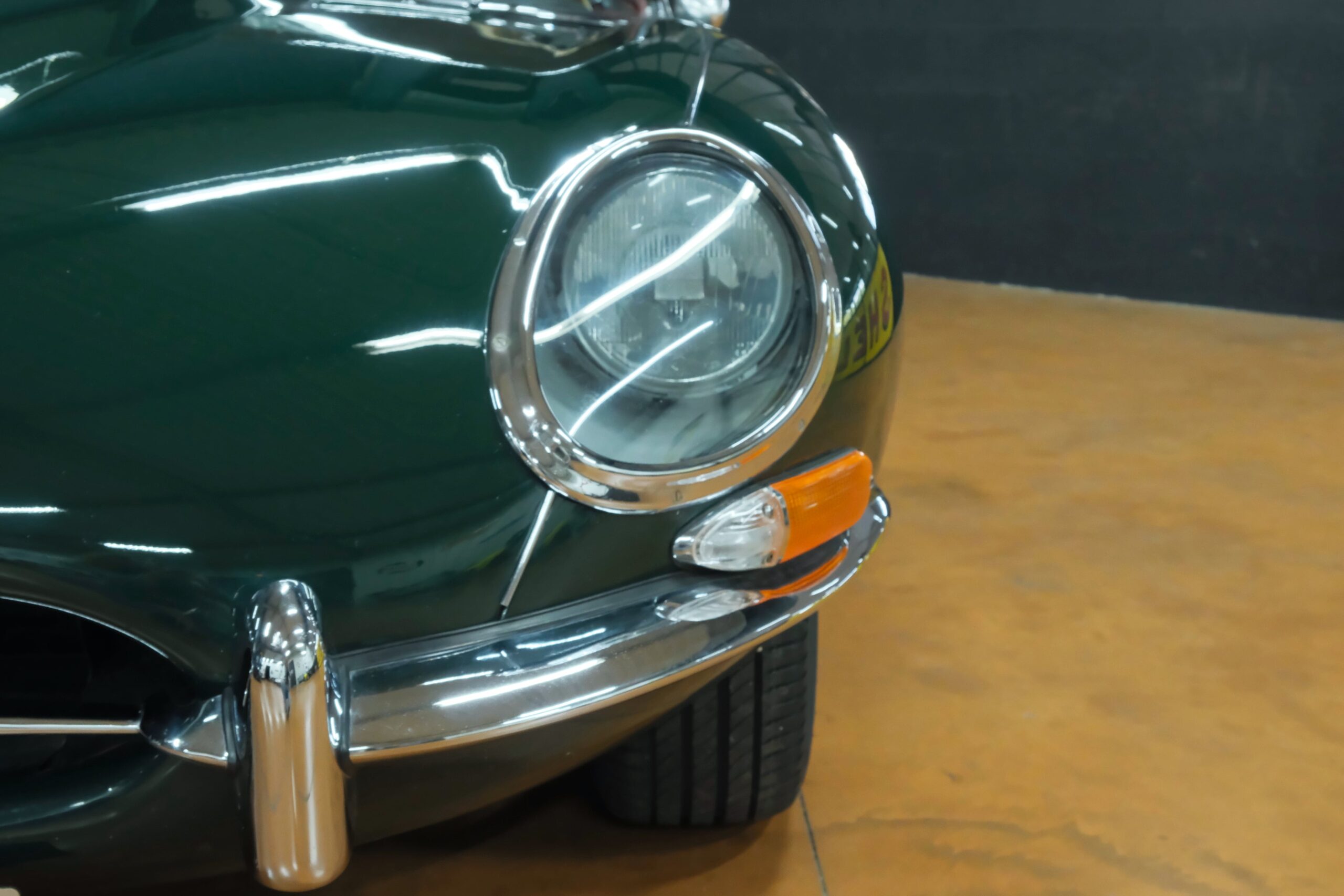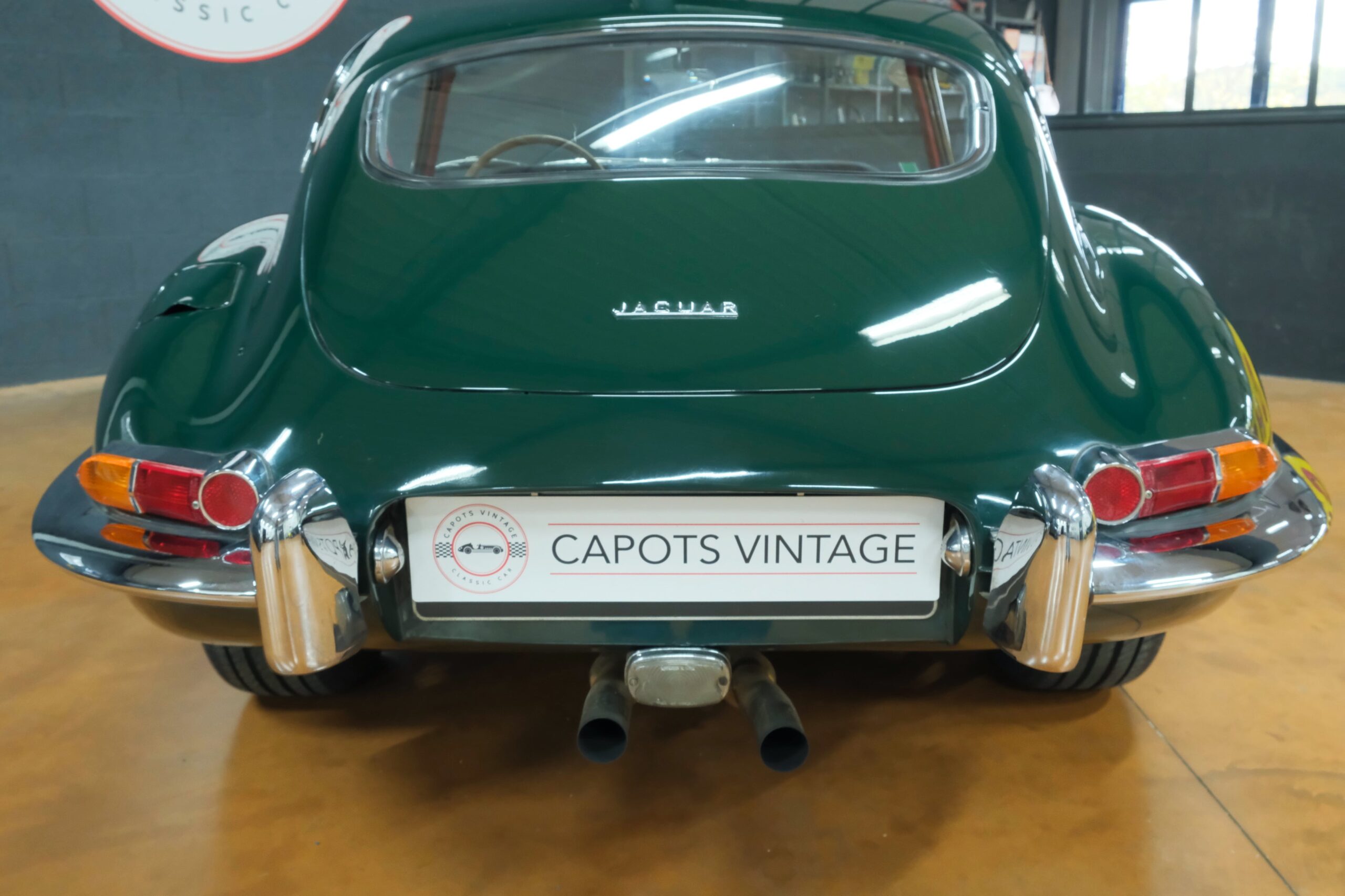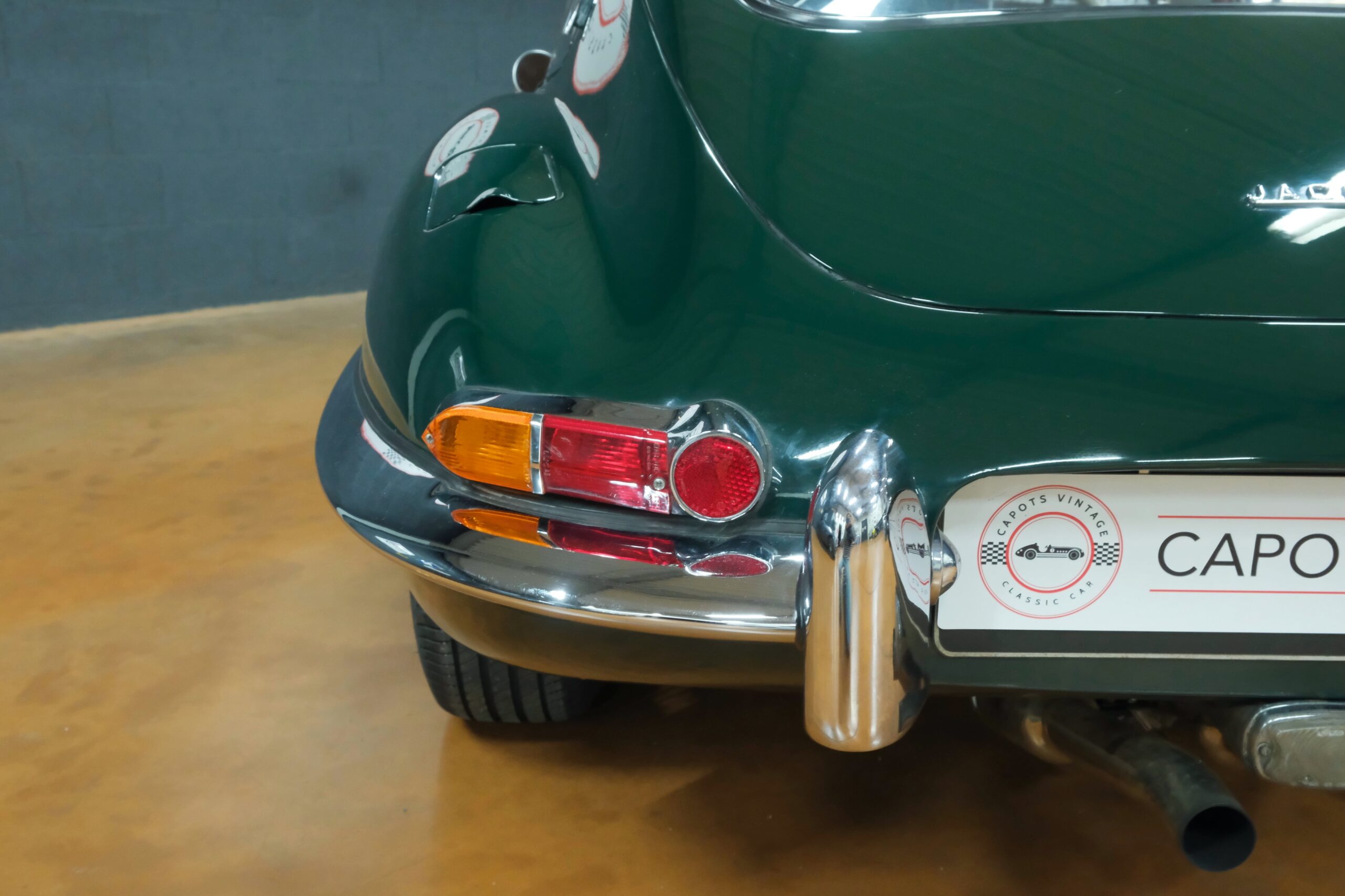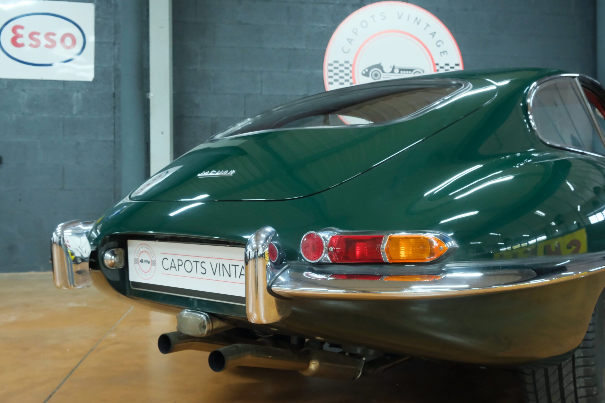 Cet exemplaire se présente aujourd’hui dans une teinte British Racing Green associée à un intérieur en cuir Bordeaux, un mariage sobre et harmonieux qui souligne la finesse du dessin de Malcolm Sayer. Le moteur, matching numbers (bloc et culasse) alimenté par trois carburateurs SU horizontaux, développe 265 ch et offre des performances encore impressionnantes, avec une sonorité typique du six-cylindres Jaguar accentué par l’échappement « inox Big-Bore ». L’auto a appartenu au même propriétaire pendant plus de cinquante ans, preuve d’un entretien rigoureux et d’un soin attentif. Elle a fait l’objet d’une restauration complète par un spécialiste parisien il y a douze ans, incluant la carrosserie, la sellerie et la mécanique.