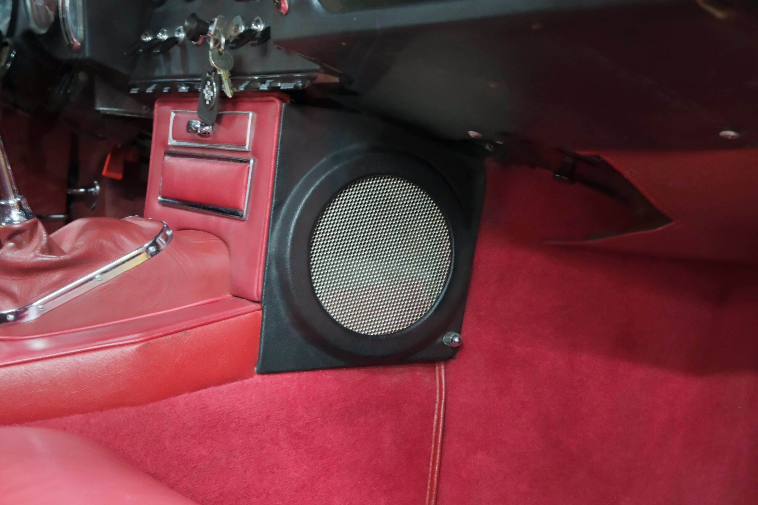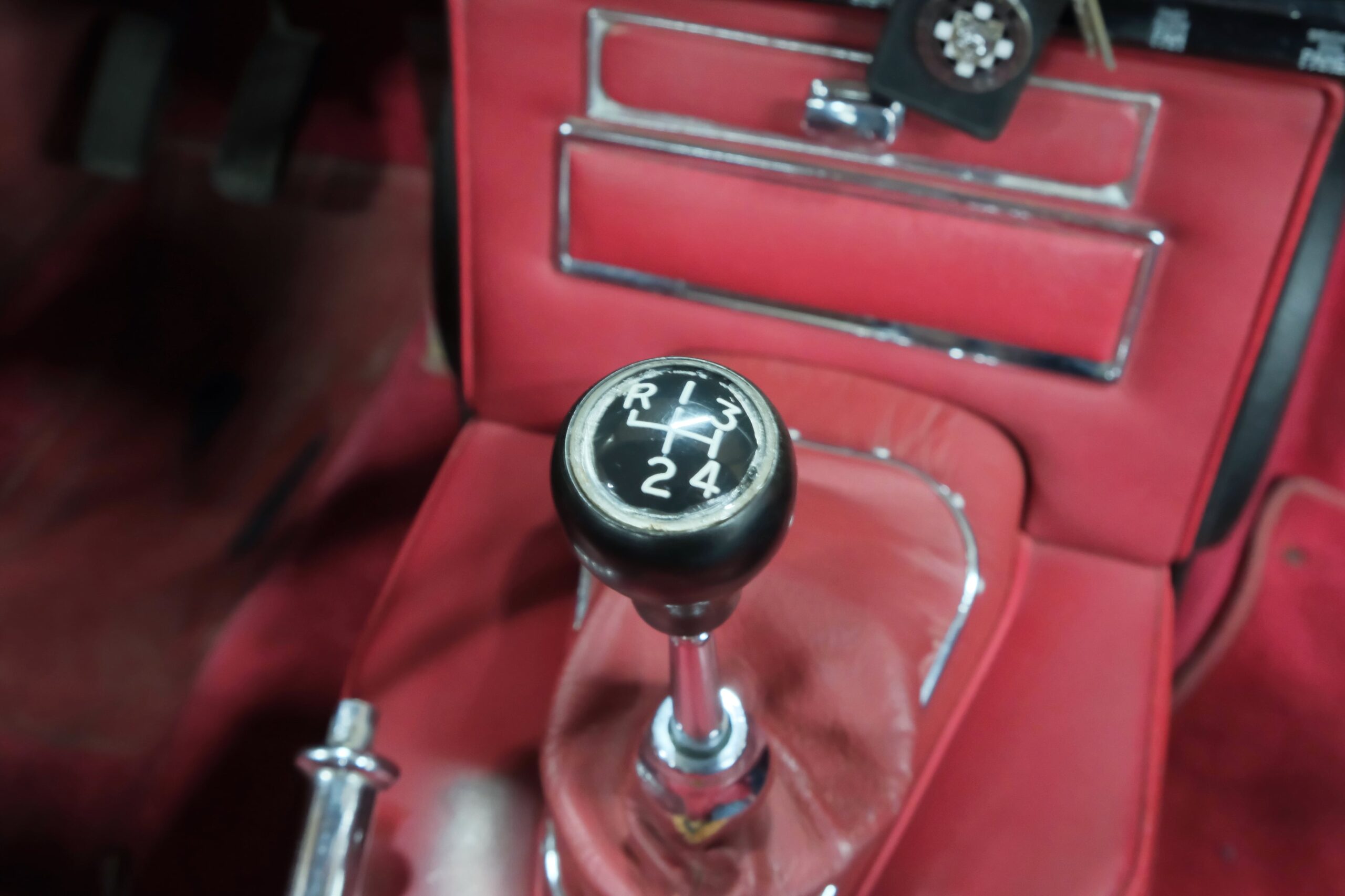 Un volant en bois Moto-Lita à trois branches, accompagné d’un pommeau du vitesses Bakelit, apporte la touche finale à cet intérieur raffiné.