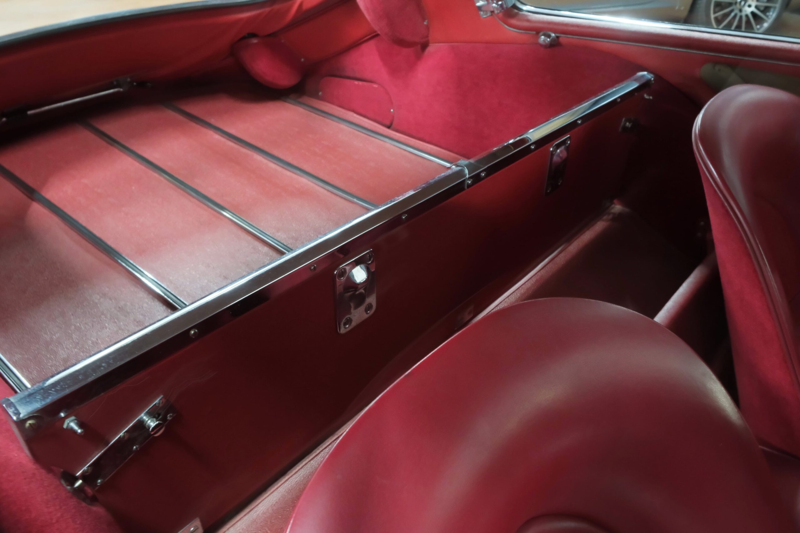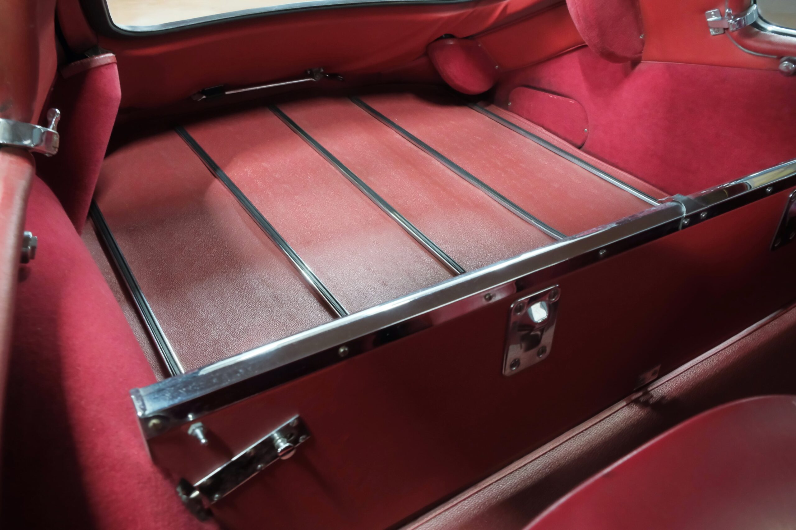 L’intérieur en cuir Bordeaux a été très bien réalisé, avec une finition soignée et des mousses confortables, offrant une belle présentation d’ensemble avec une légère patine.