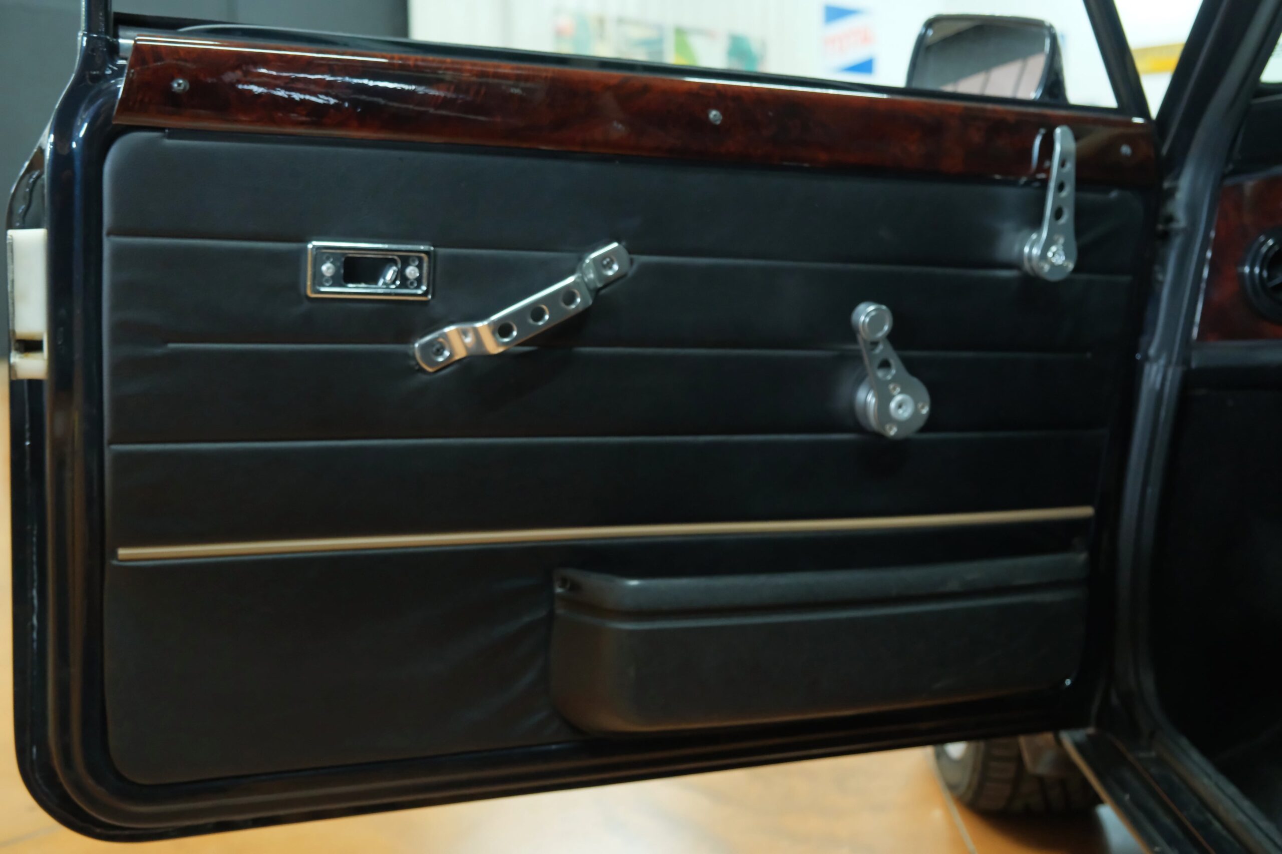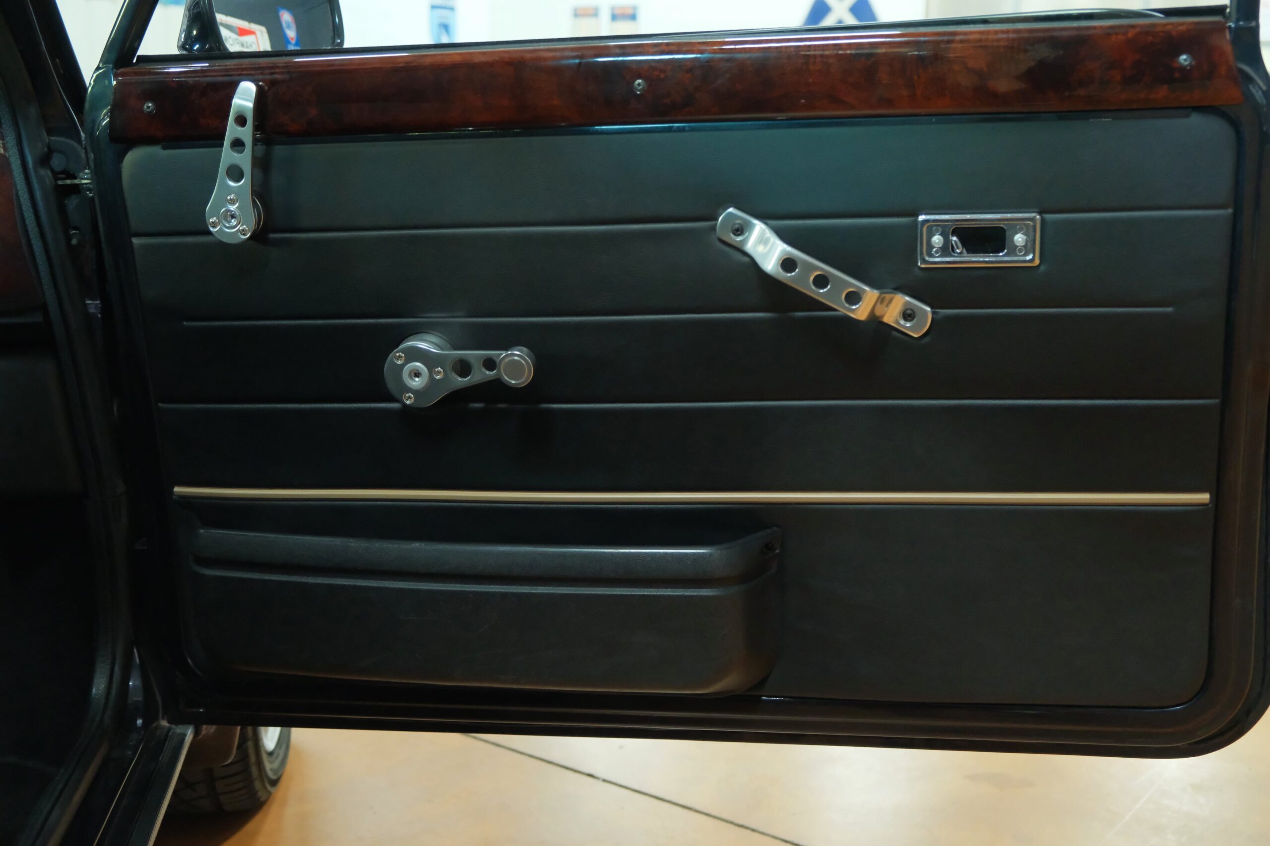 L’intérieur est quant à lui très luxueux avec des sièges en cuir noir à passepoil blanc, un volant en cuir, un tableau de bord en bois et des tapis de sol spécifiques.