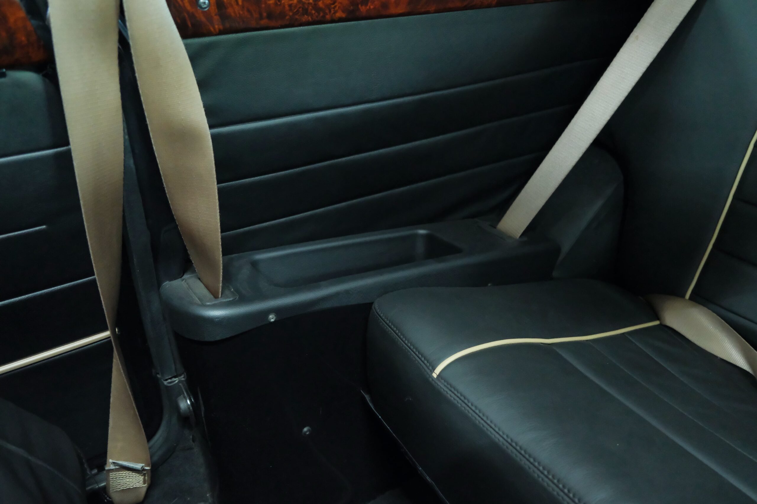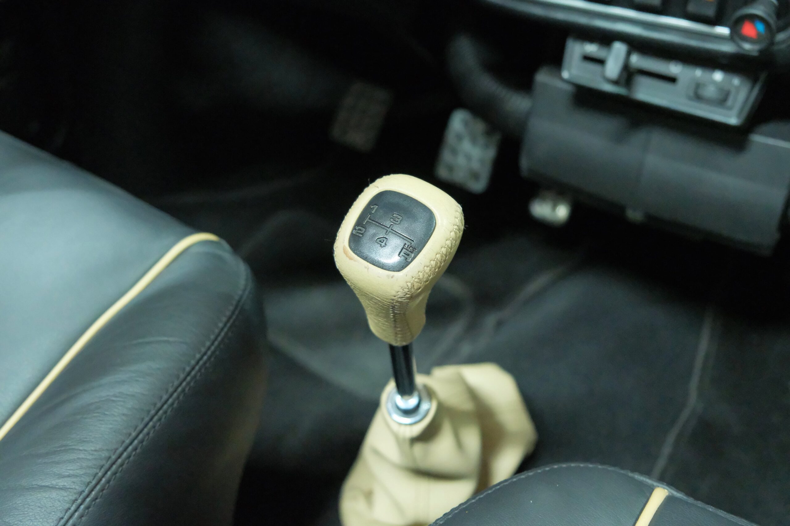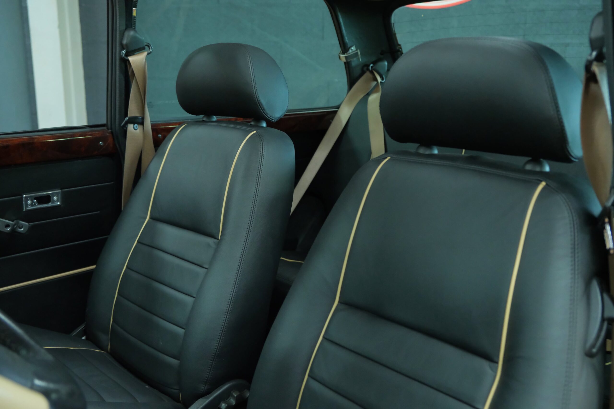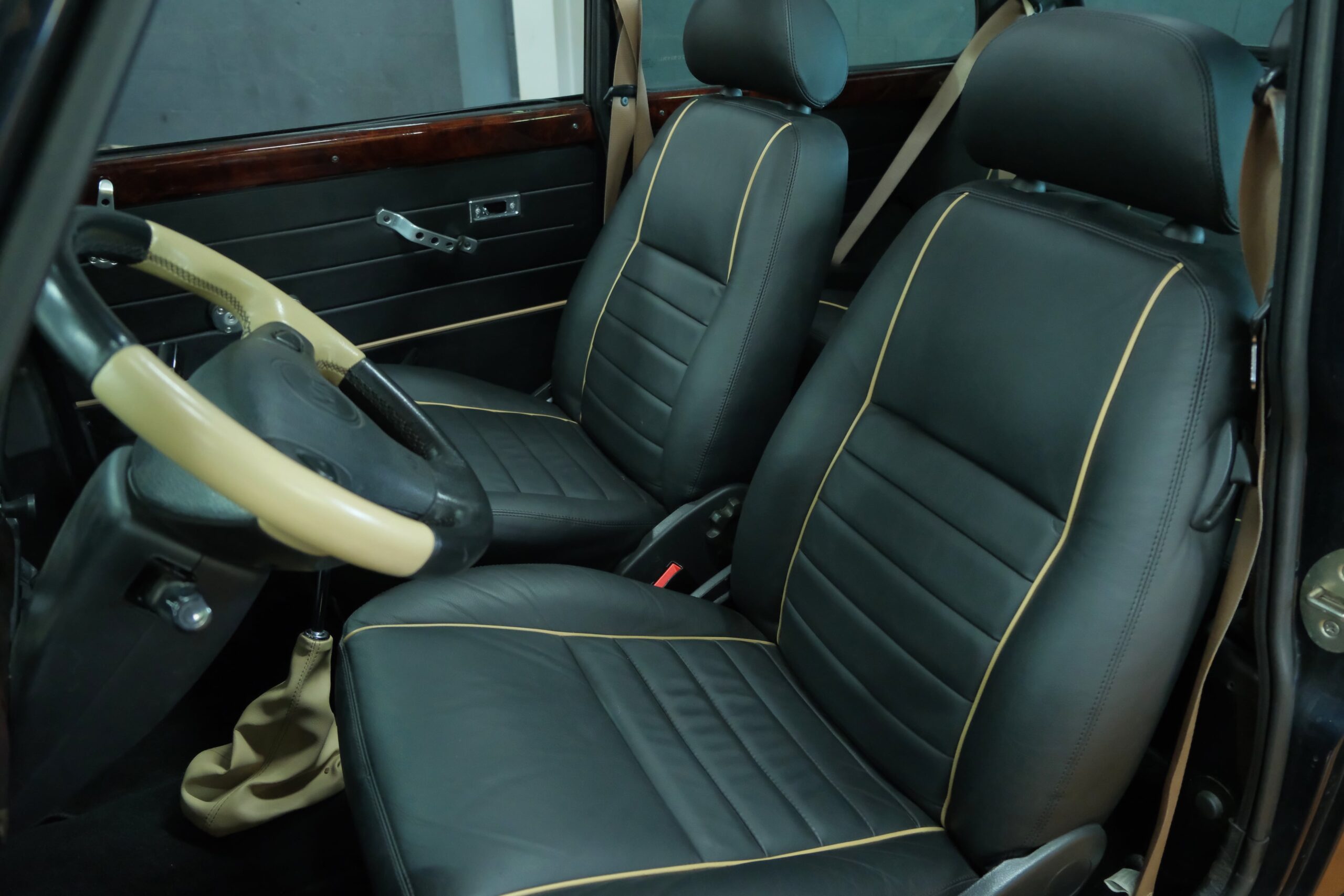 La sellerie en cuir noir à passepoil blanc est en parfait état. Les contre-portes, le tableau de bord, le volant et les moquettes sont aussi en excellent état.