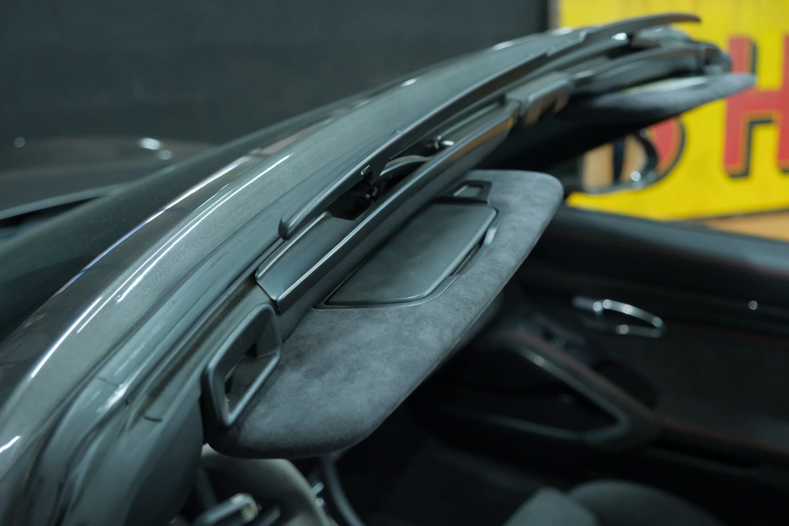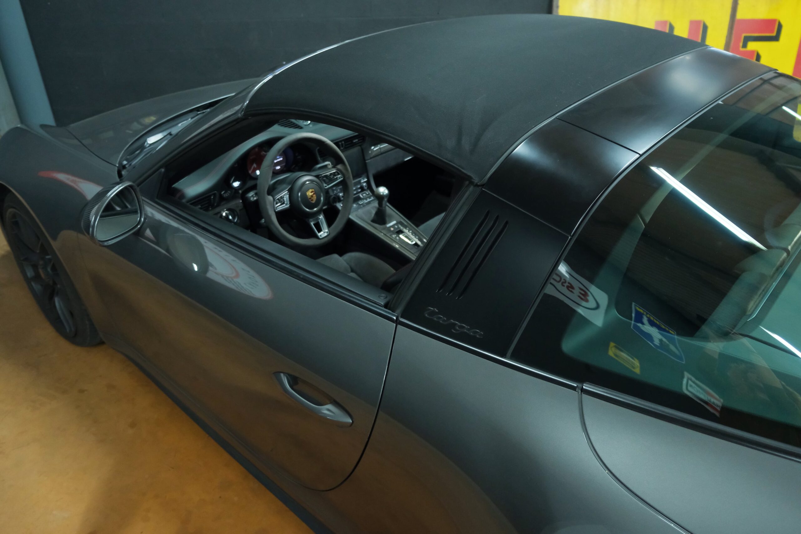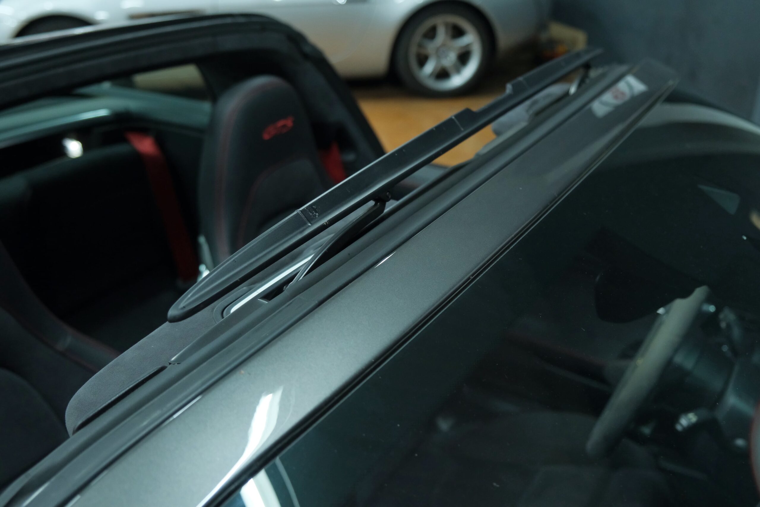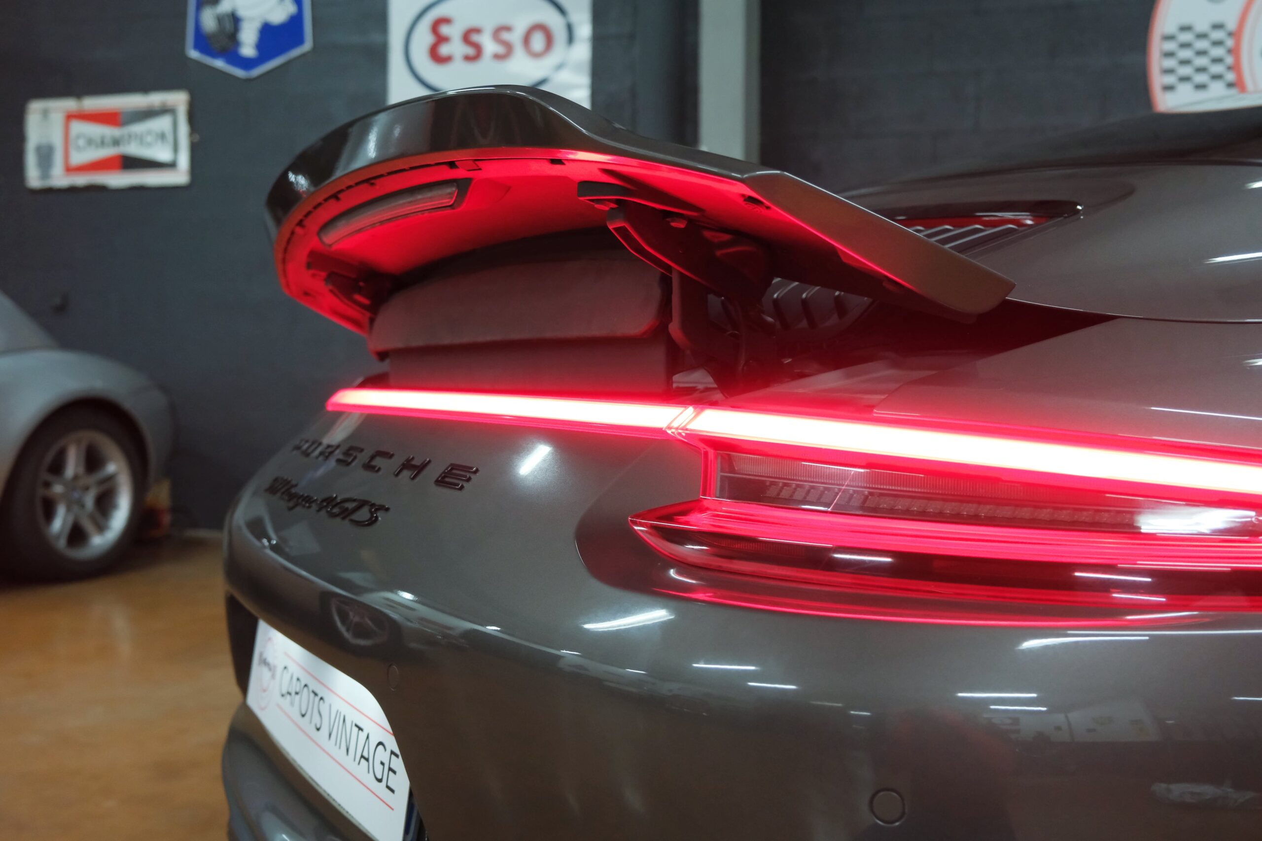 C’est avec la 991 Targa (2014) que Porsche renoue avec l’esprit originel. L’arceau inox emblématique fait son retour, accompagné d’un mécanisme de toit spectaculaire, 100 % automatisé, qui marie parfaitement le style vintage aux technologies modernes.
