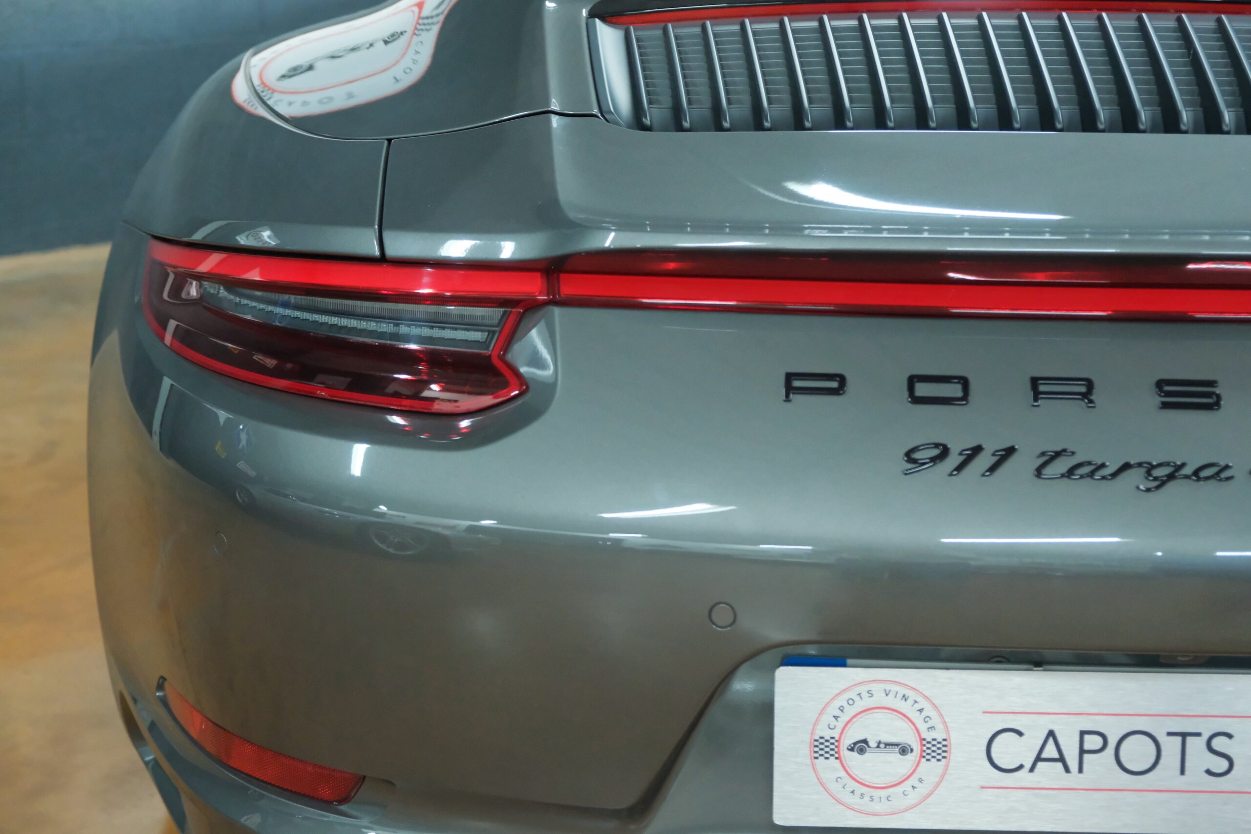 Nous sommes ravis de vous présenter cette exceptionnelle Porsche 911 Targa 4 GTS (type 991.2) livrée neuve en France dans la concession Sonauto à Paris : Elle est proposée dans une configuration particulièrement rare et convoitée avec sa teinte extérieur Achatgrau métallisée, son intérieur cuir & alcantara noir qui est rehaussé de surpiqûres et du logo GTS en rouge, mais surtout avec sa boîte manuelle à 7 rapports qui en fait un véritable collector.