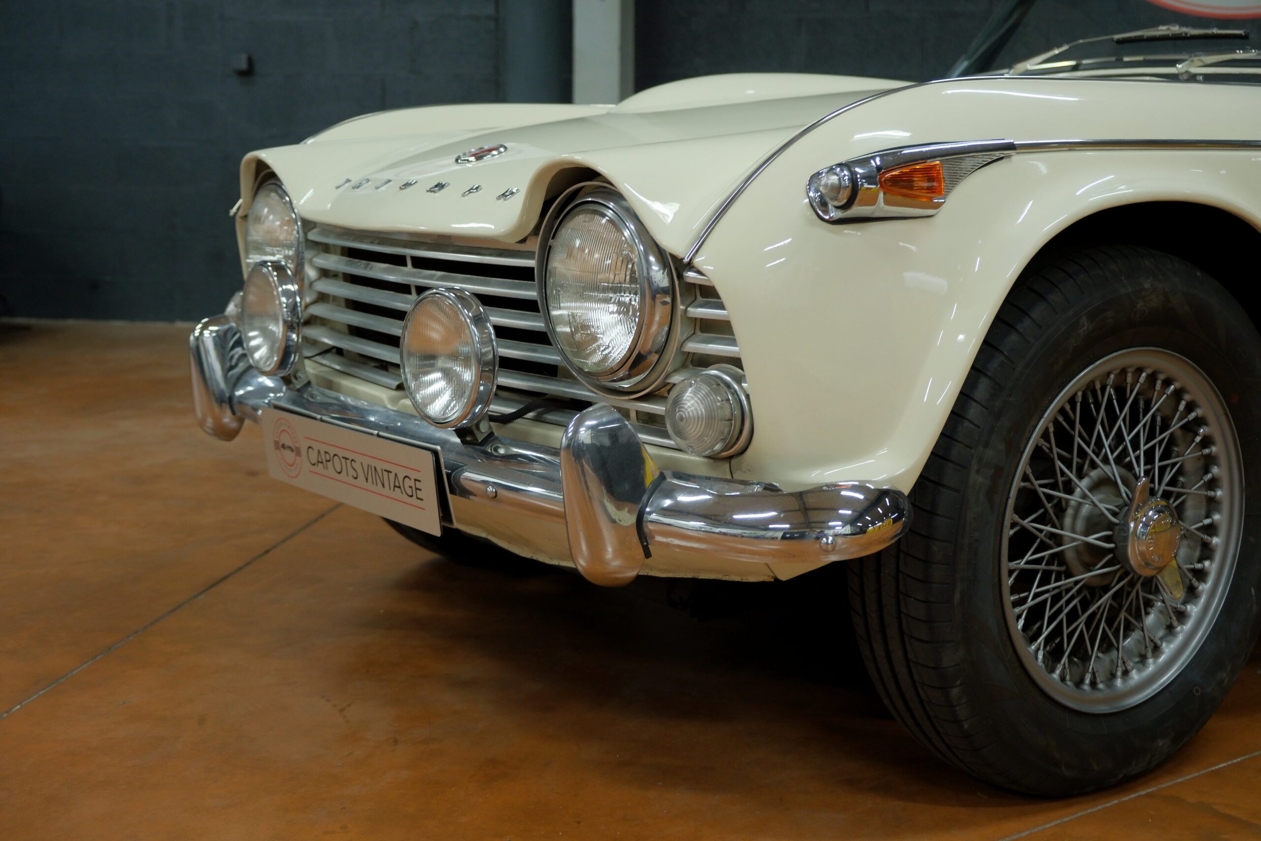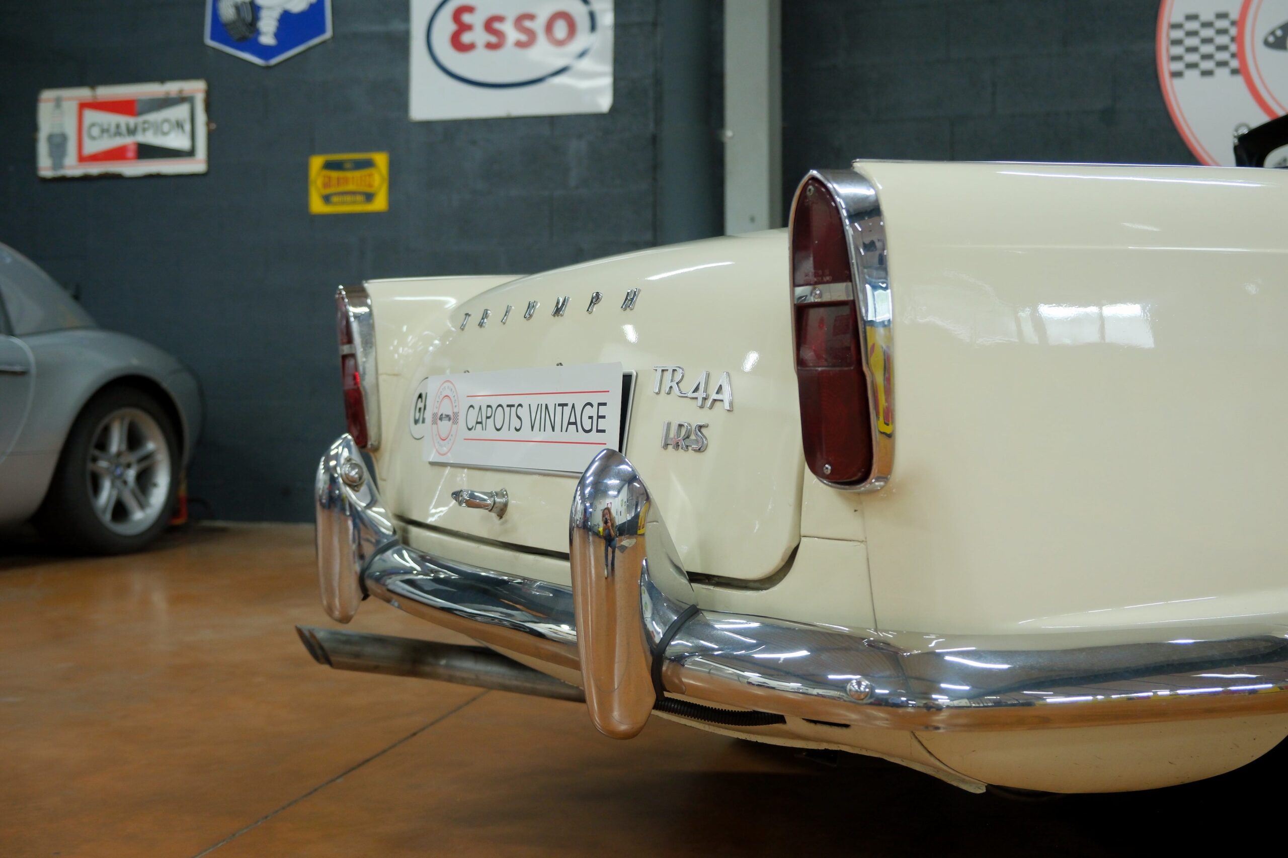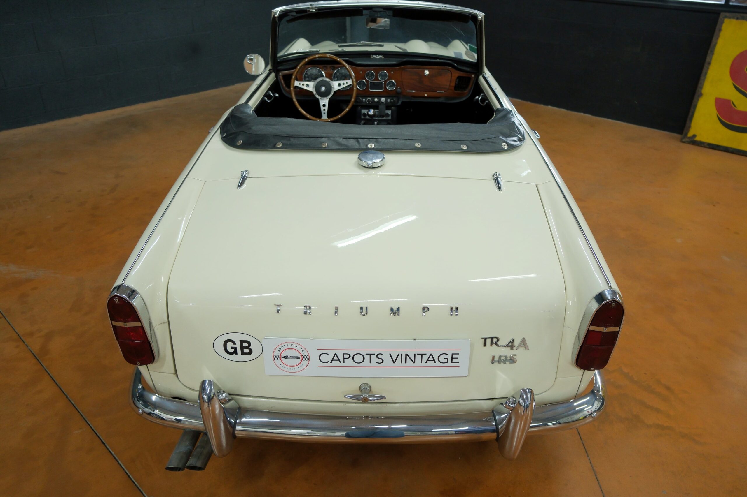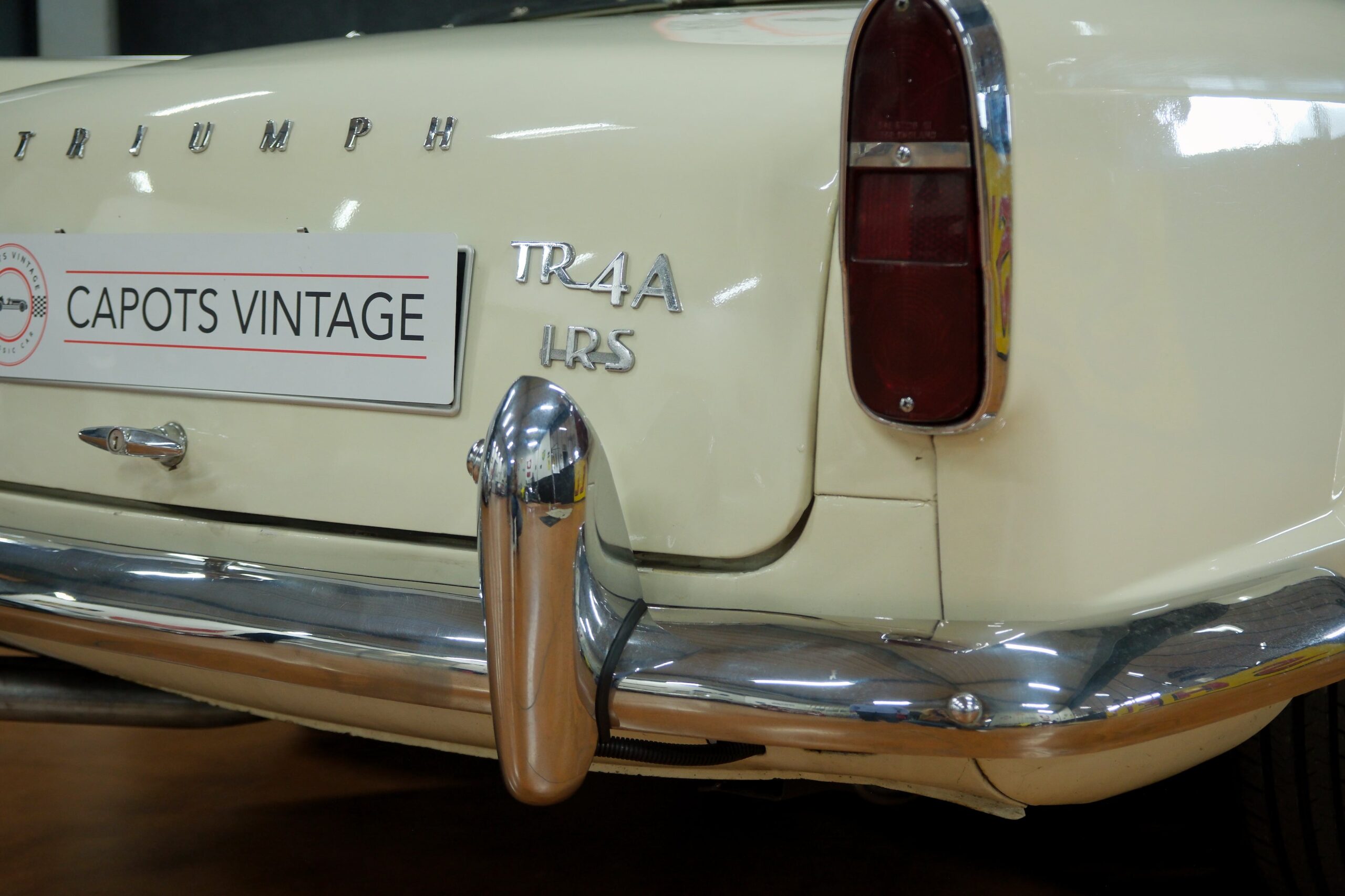 Capots Vintage a le plaisir de vous présenter une Triumph TR4A dans sa version IRS (Independent Rear Suspension), se différenciant des modèles précédents ses quatre roues indépendantes, gage de confort et de tenue de route améliorée.