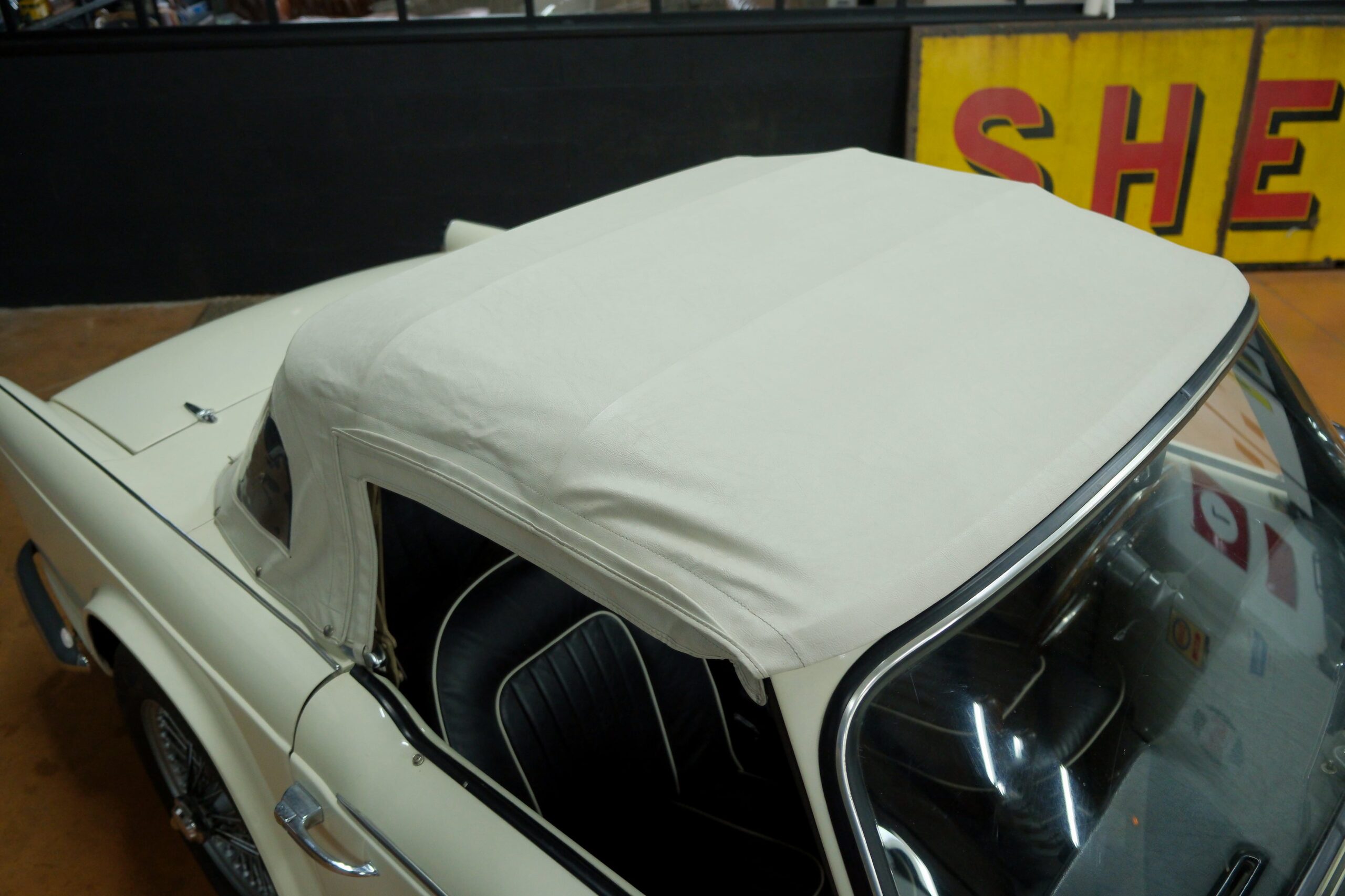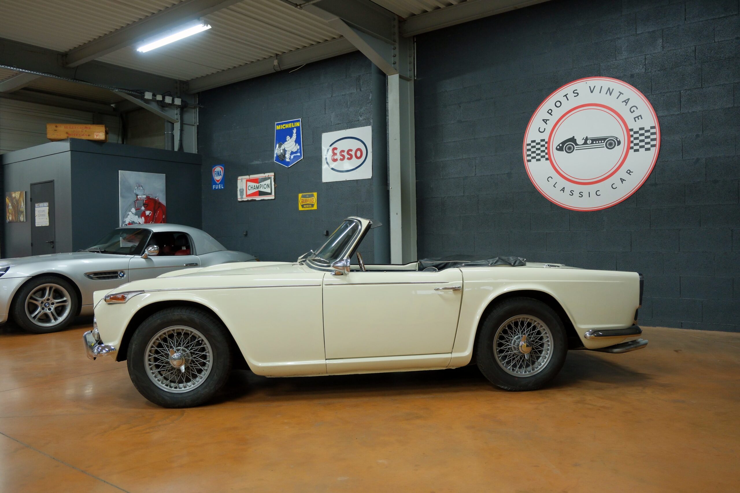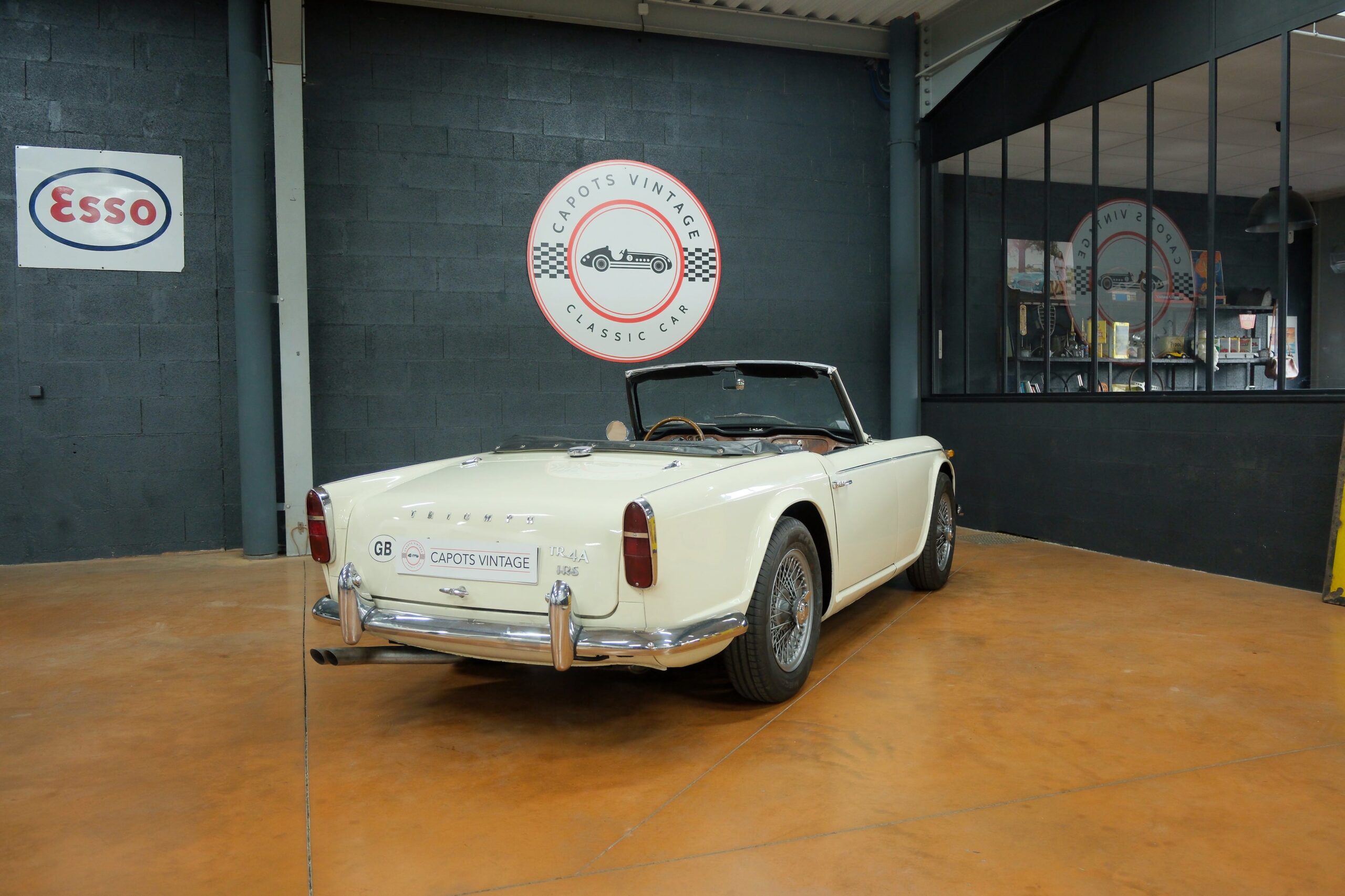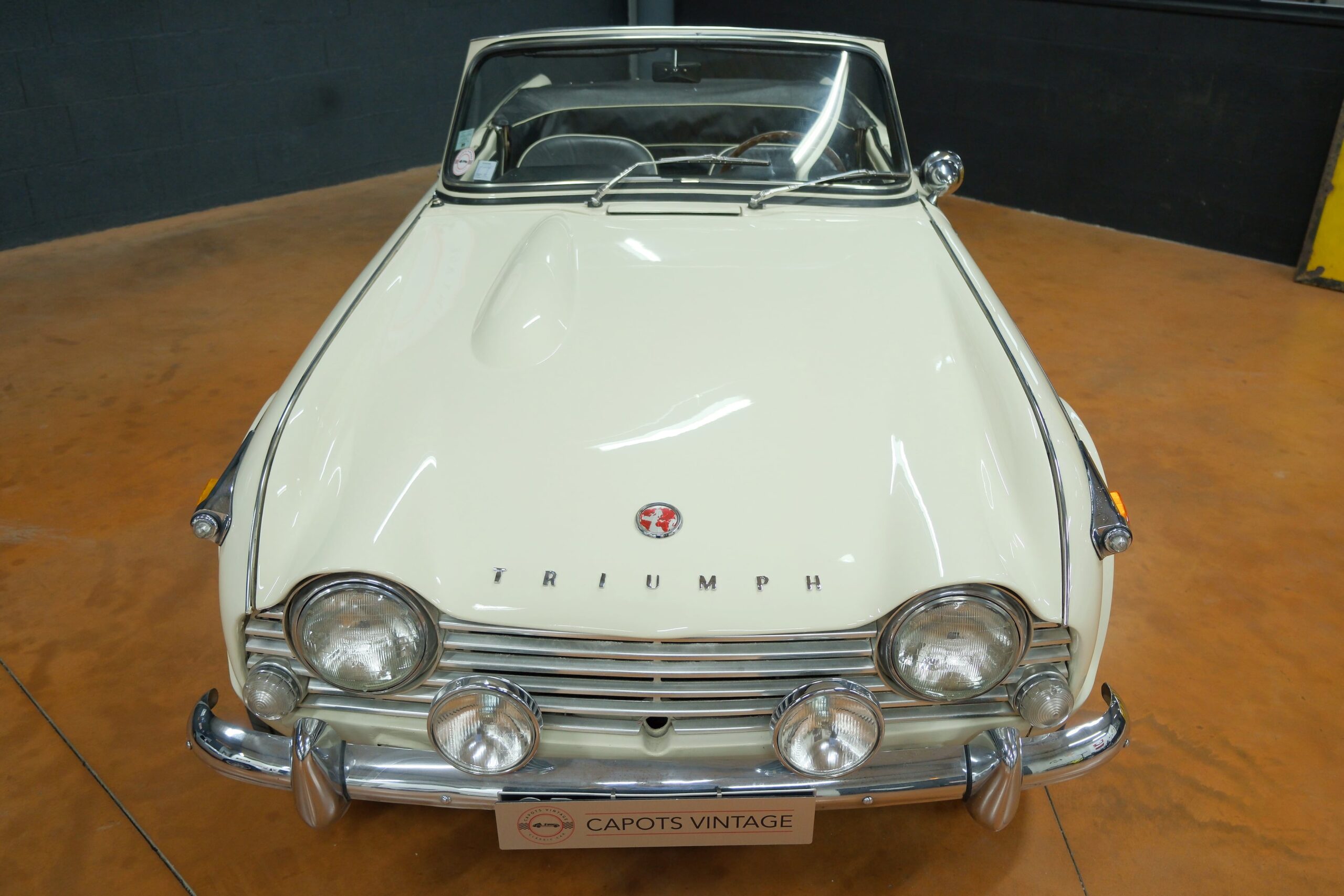 Capots Vintage a le plaisir de vous présenter une Triumph TR4A dans sa version IRS (Independent Rear Suspension), se différenciant des modèles précédents ses quatre roues indépendantes, gage de confort et de tenue de route améliorée.